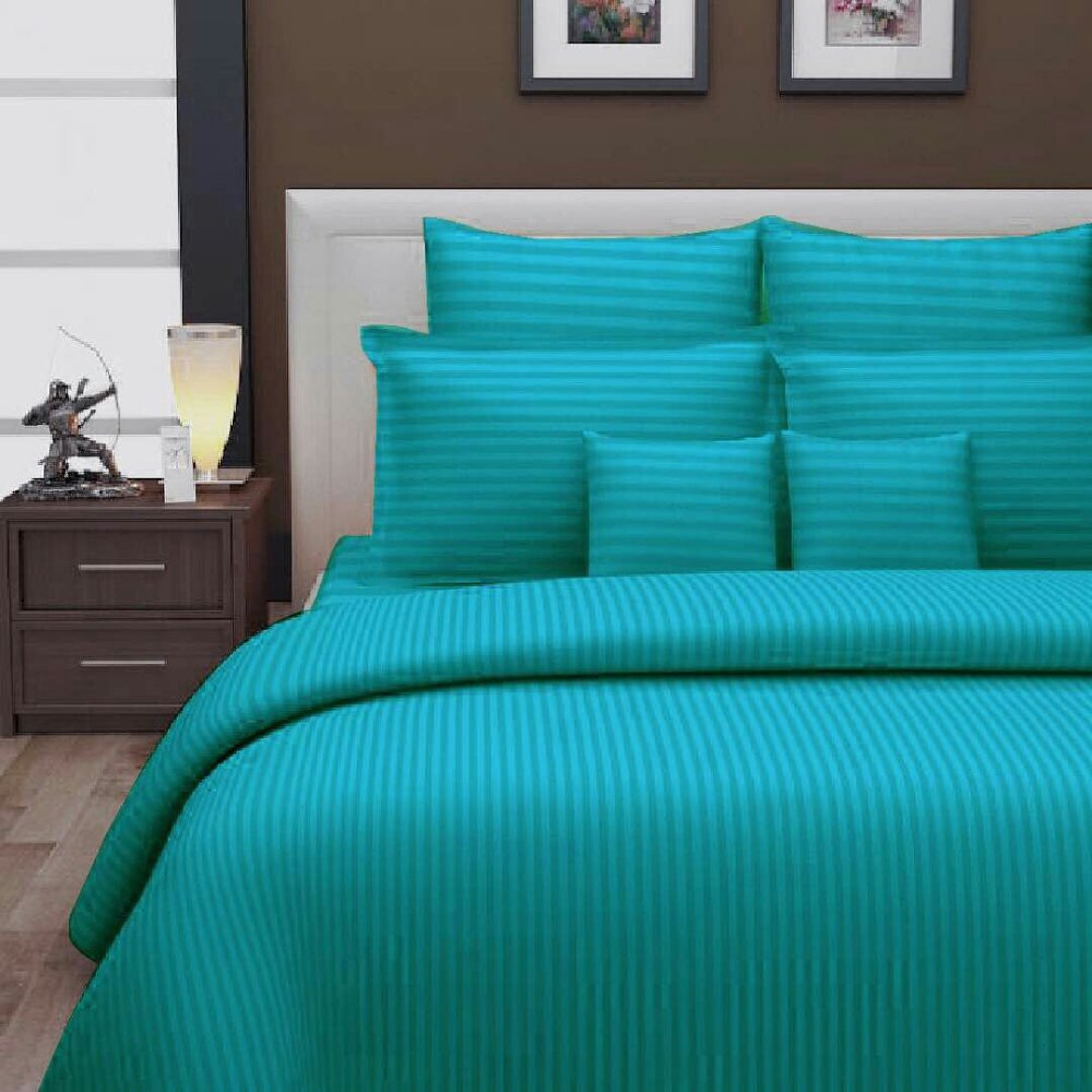 Premium glace cotton satin stripe bedsheet with a smooth finish, elegant stripe design, and easy-care fabric, ideal for daily hotel use.